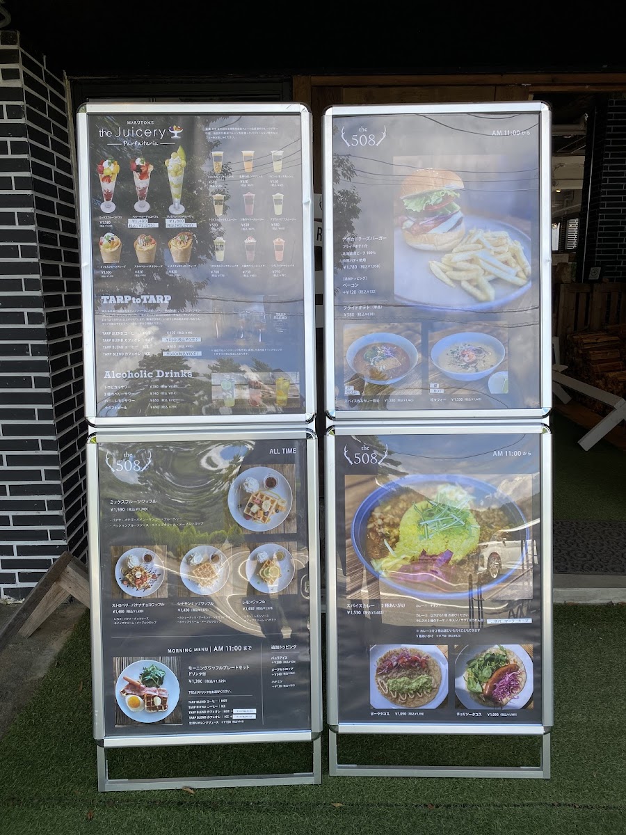 当カフェに併設するキャンプ施設【the508】宿泊者様限定の、ホットサンドとドリンクのお得なセットメニュー。 現在ホットサンドは、山中湖ハムと卵サラダ・自家製鶏ハムとコールスロー・ツナマヨカレー風オープンサンドの三種からお選びいただけます。
